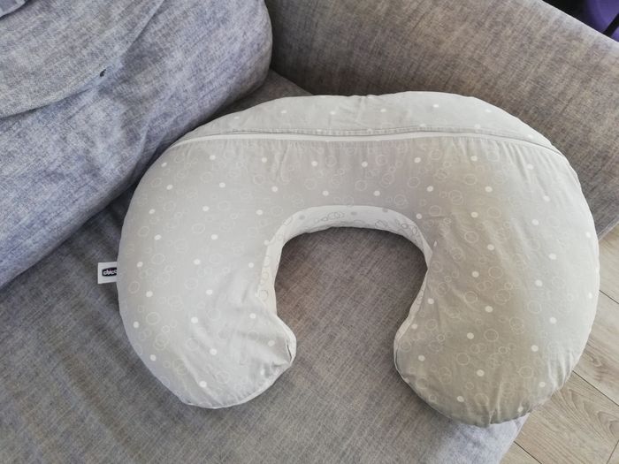 Coussin allaitement de la marque Chicco, modèle boppy en très bon état. Dehoussable et lavable. Vendu avec 2 housses Épouse parfaitement la taille, à la bonne hauteur pour allaiter bébé et assez ferme pour ne pas s'affaisser avec le poids de bébé.