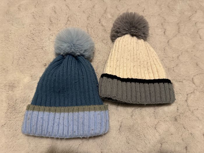 Lot de deux bonnets tout doux avec pompons. Un dans les tons bleus et un écru/gris. Taille : 42 cm (tour intérieur à plat) / 6 mois 🚚 Livraison : Envoi via Mondial Relay, Colissimo ou autres transporteurs proposés par la plateforme. 🤝 Remise en main propre possible à Combs-la-Ville Si vous avez des questions ou souhaitez d’autres photos, n’hésitez pas à me contacter. D’autres articles disponibles, n’hésitez pas à faire un lot ! ☺️