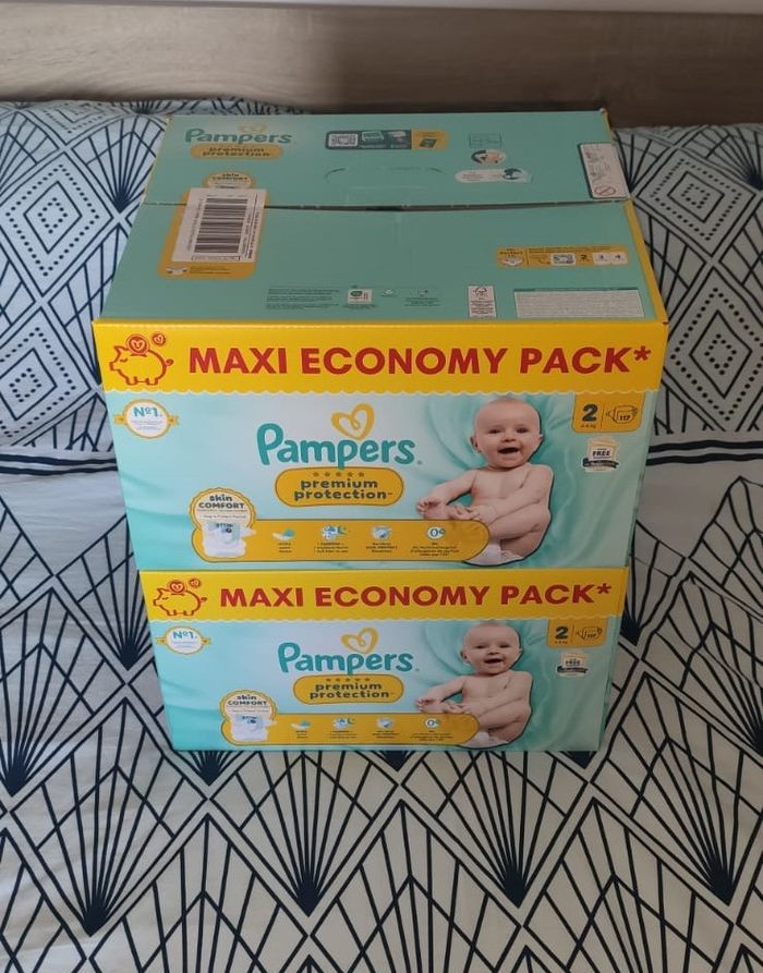 Lot de 2 cartons Maxi Pack 117 (soit 234) Couches Pampers Premium protection Taille 2 (4-8 kg) ⚠️⚠️⚠️Si vous sélectionnez Mondial Relay ne prenez pas un Locker, ça ne rentre pas. 🔔 🔔 🔔RAPPEL : Le délai pour retirer les colis a été raccourci à 5-7 jours selon les transporteurs (dimanches et jours fériés inclus). Merci de vérifier que vous serez en mesure de retirer votre colis à temps avant de commander.🙏🙏🙏 #pampers #couches #t1 #t2 #t3 #t4 #t4+ #t5 #t5+ #t6 #t7 #taille1 #taille2 #taille3 #taille4 #taille5 #taille6 #taille7 #taille8 #premium #protection #baby #pants #bébé #paquet #pack #harmonie #dry #huggies #sec #nuit #absorbant #extra #absorption