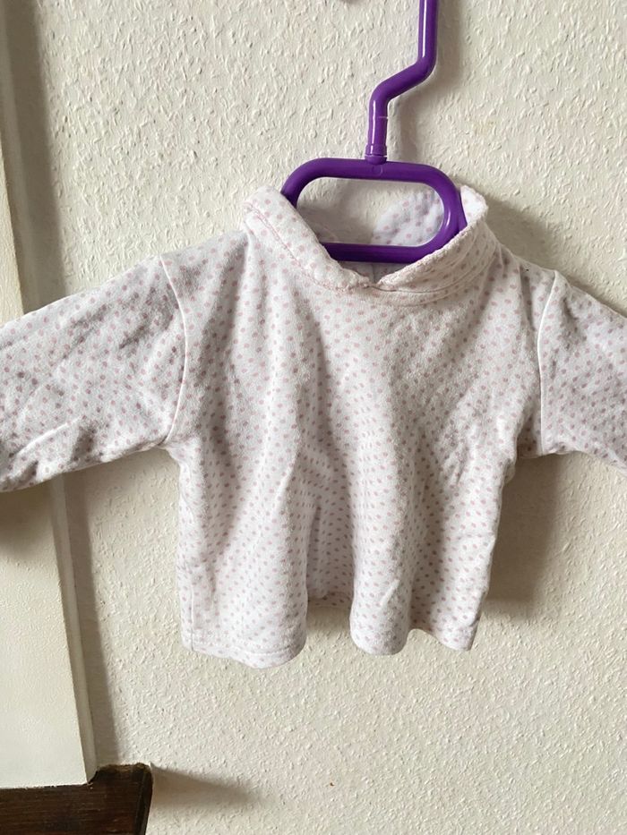 Vend ce très jolie petit pull blanc à pois rose en très bon état ! #pullbebefille #rukabyebaby #6moisfille