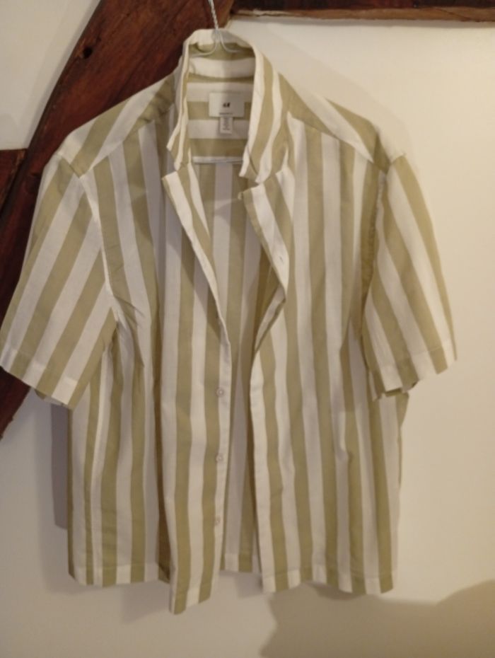 Chemisier femme 🩶 Très bon état 👍 Jamais porté ,juste lavé Taille 38 -40 Marque H&M Manches courtes Envoi rapide et soigné ☺️ Abonnez vous ☘️ Dana 🪻