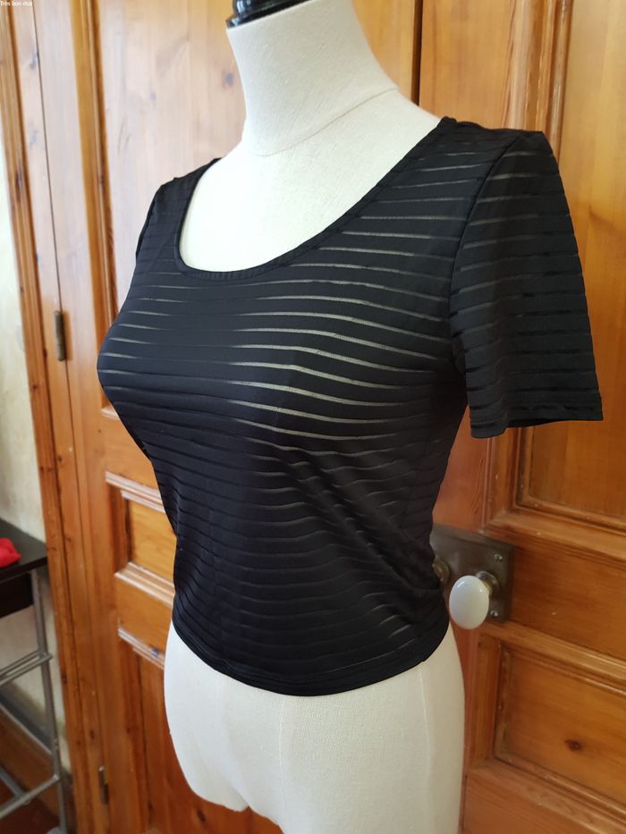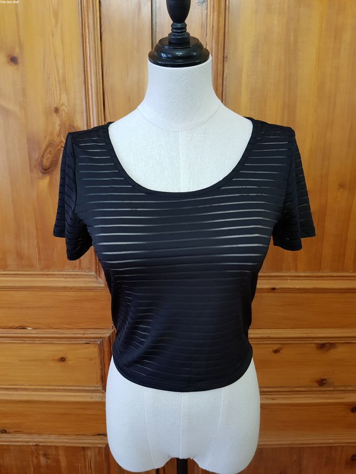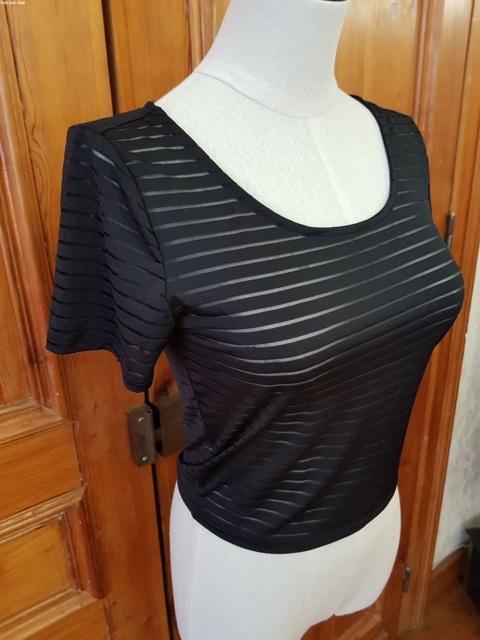 Crop top noir transparent ligné - photo numéro 1