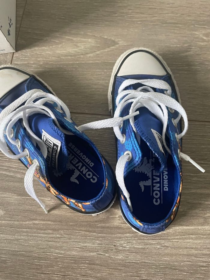 Rare et collector Converse Dinosaures Dinos Pointure 27 Avec boite d’origine Portées 3 sous tout au plus Ps: malheureusement le plastique blanc des converses marque immédiatement Cf photos