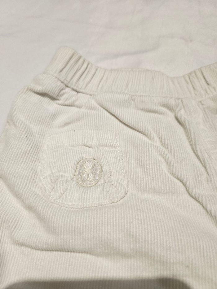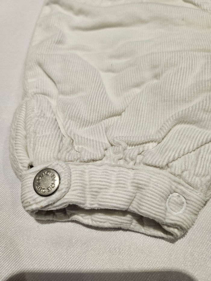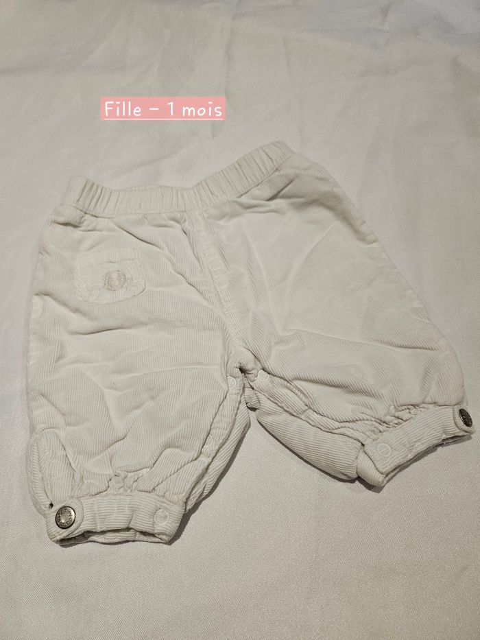 Pantalon en velours blanc. Taille élastique. Pressions à l'entrejambe. Petite poche devant. Marque: Obaibi Taille : 1 mois