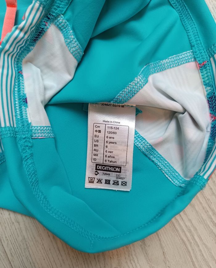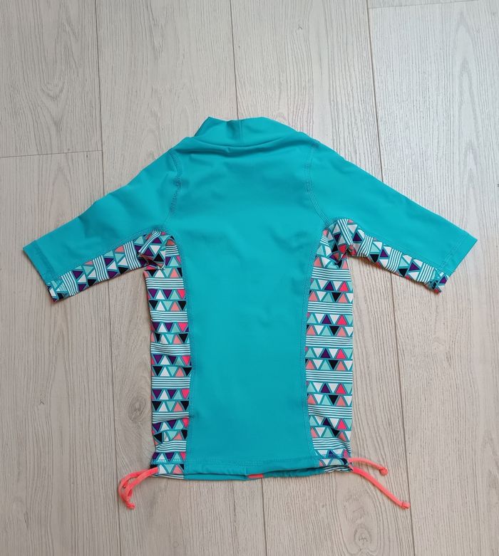 T-shirt anti UV Olaian (Décathlon) taille 6 ans, idéal pour la plage ou la piscine 🌊 • Protection solaire (anti UV) • Manches courtes • Col montant pour mieux protéger la nuque • Coloris turquoise avec motifs géométriques colorés • Liens de serrage en bas Parfait pour protéger la peau des enfants pendant les baignades et activités au soleil ☀️ ✔ Taille : 6 ans ✔ Marque : Olaian – Décathlon ✔ Très bon état Indispensable pour les vacances d’été 🏖️ 📦 Envoi rapide et soigné #olaian #decathlon #antiuv #tshirtantiuv #plageenfant #6ans #vetementplage #maillotenfant
