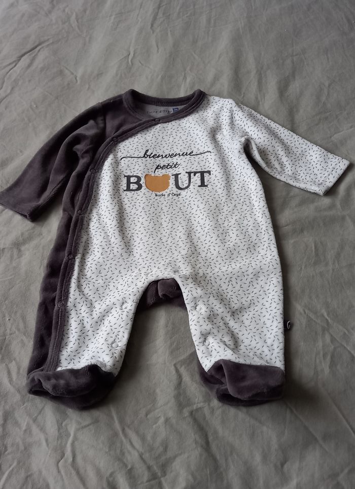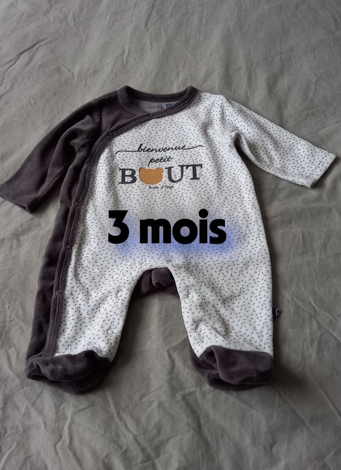 Pyjama velours gris et blanc Sucre d’Orge Fermeture pressions sur le côté devant Jamais porté Taille 3 mois #3moisenfants_imoddeco