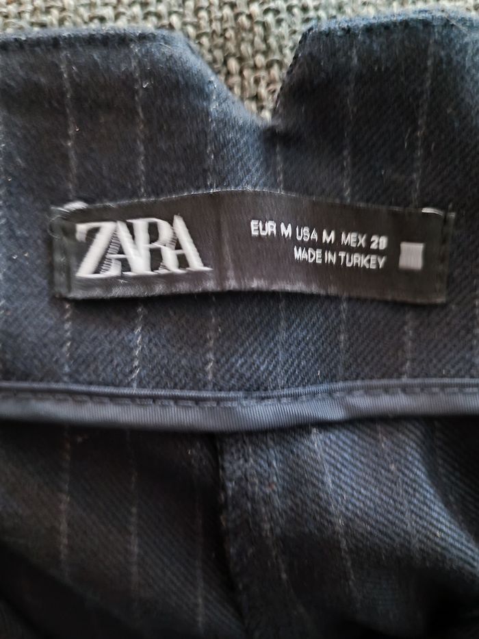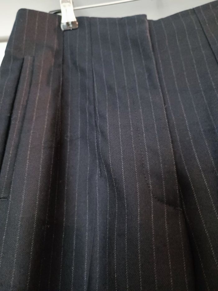 Pantalon en lainage bleu marine avec fines rayures blanches,fermeture invisible