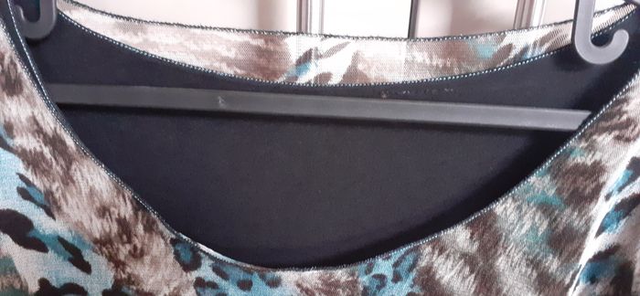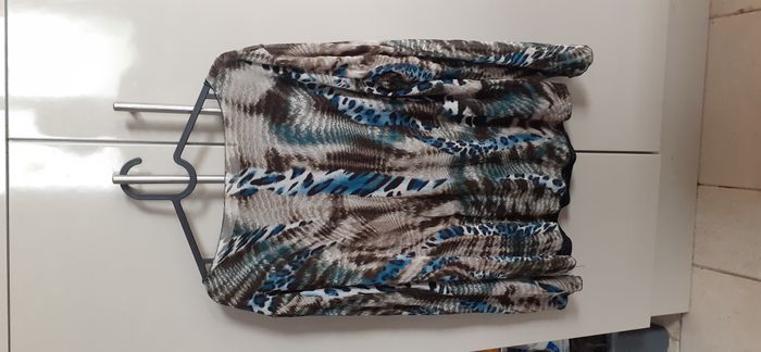 Tunique femme "La Redoute" 46/48 Couleur: multicolore (tons vert d'eau, beige, marron) Col rond Manches longues Tunique entièrement doublée Composition: 96% viscose, 4% élasthanne, doublure 100% polyester Largeur épaules: 47 cm Longueur totale: 65 cm En excellent état