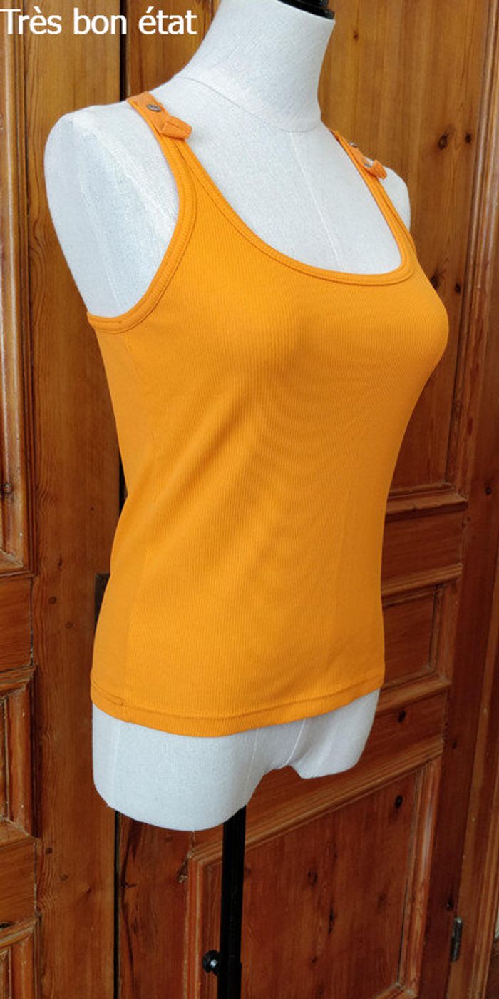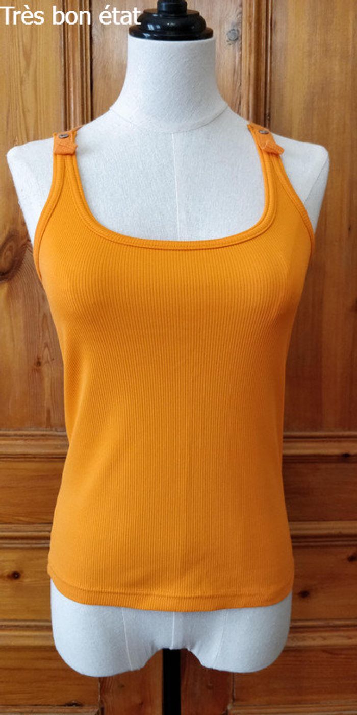 Débardeur orange Épaules dégagées en biais Petits boutons de décoration