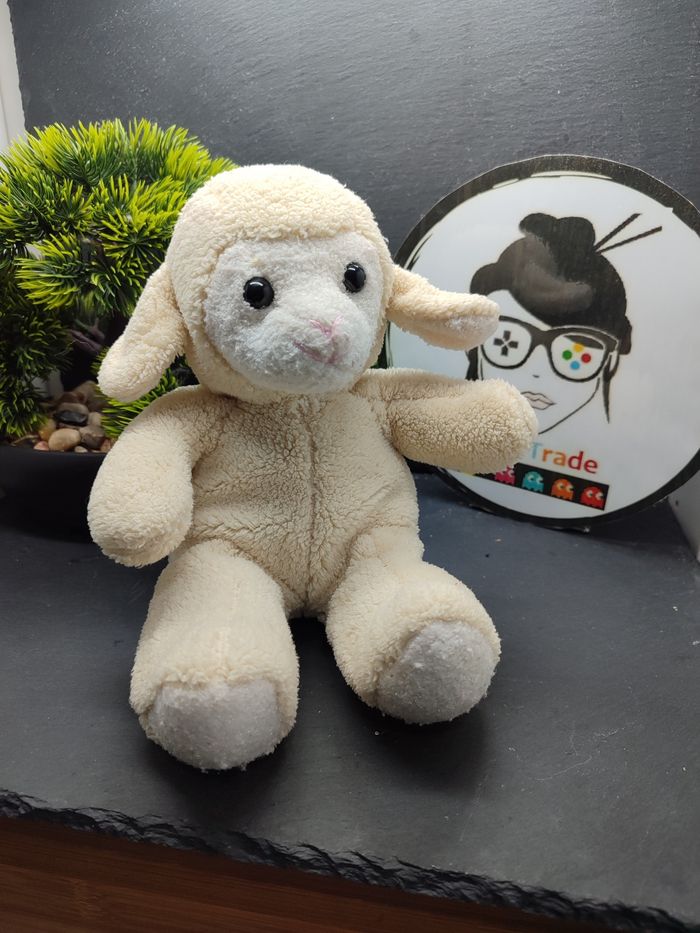 doudou peluche ancien vintage mouton blanc beige écru rose noir Lamb Agneau - photo numéro 1