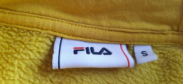 Sweat à capuche homme "Fila" taille S Couleur: jaune et noir 87% coton, 13% polyester Largeur épaules:48 cm Longueur totale: 75 cm En excellent état, très peu porté