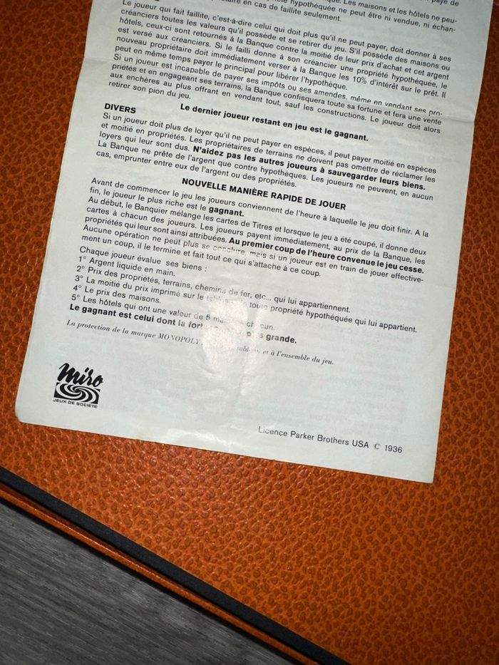 Jeu - Excellent état - Monopoly - Édition Miro - Jeu de plateau complet - La boîte est légèrement cognée mais en très bon état pour son âge (voir photos) - Licence Parker Brothers USA 1936