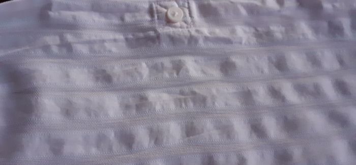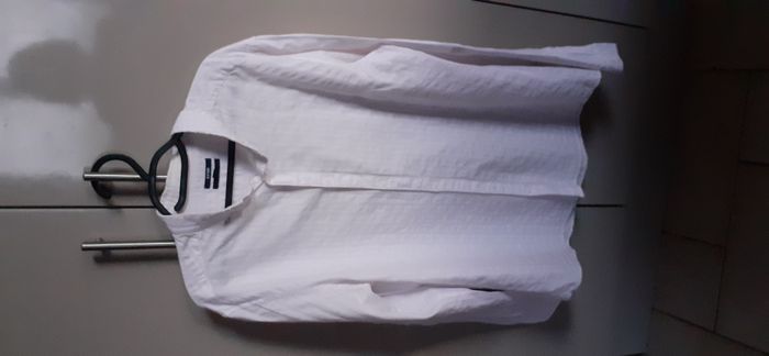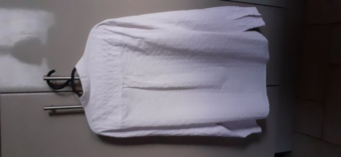 Chemise homme "Kiabi" 43/44 (XL) Couleur: blanc avec rayures rose pâle Effet gaufré Manches rabattables grâce à 1 bouton. 100% coton Largeur épaules: 50 cm Longueur: 78 cm Chemise comme neuve.