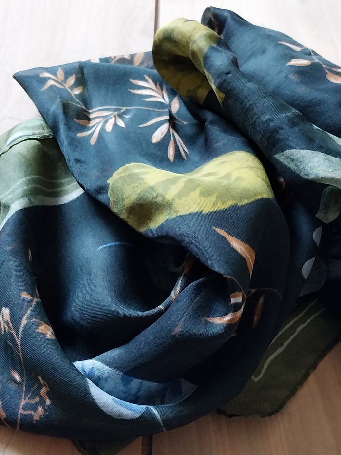 Foulard femme motif feuilles automne couleur vert - photo numéro 3