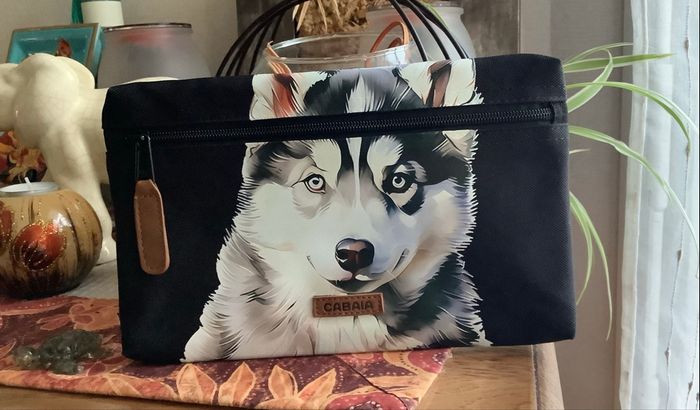 Pochette CABAÏA noire neuve sans étiquette customisée chien husky. J’ai un V….D avec 450 abonnées et que des évaluations positives j’ai retiré pratiquement toutes mes pochettes. Grosse galère pour les vendeurs actuellement sur leur site ! Ils bloquent et ferment des comptes à tout va et grand nombre n’arrivent même pas à récupérer leur argent vu que leur compte a été fermé! Honteux !