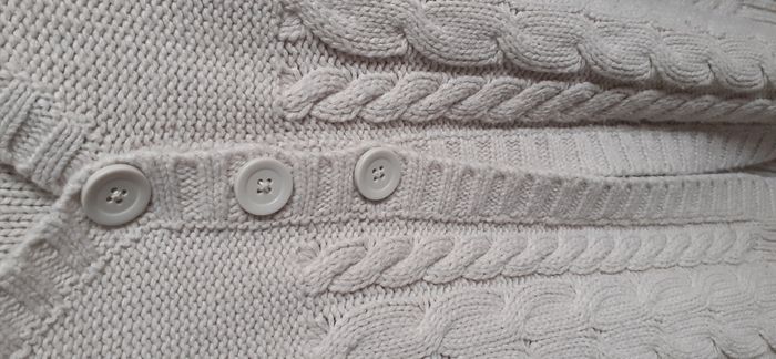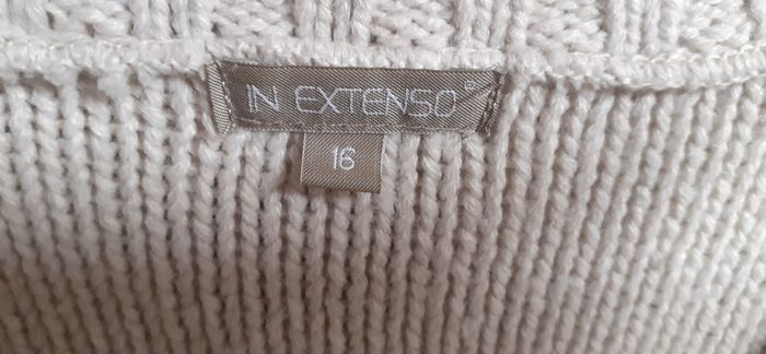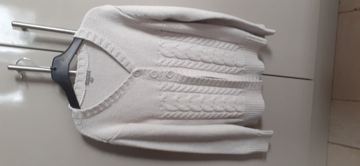 Gilet fille "In Extenso" 16 ans Couleur: beige Fermeture par 3 gros boutons Torsades Longueur: 60 cm Largeur épaules: 40 cm 92% acrylique, 8% laine Gilet en excellent état, comme neuf