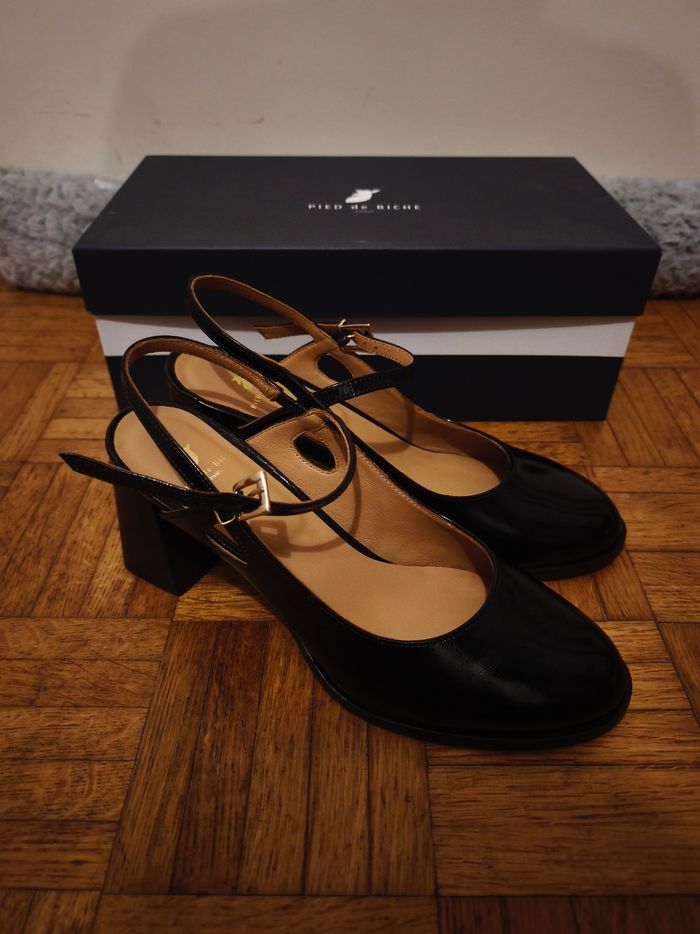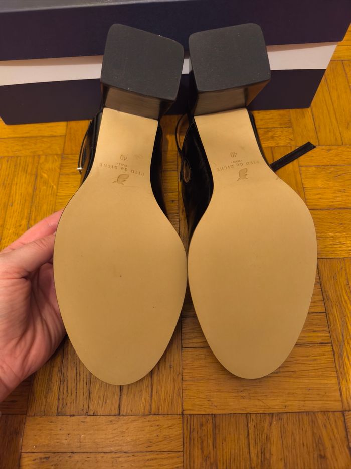 Bonjour, Je met en vente cette paire de babies, modèle Adèle, marque Pied de Biche en taille 40. Jamais porté, très léger petit défaut sur la semelle du dessous de l'une des paires (voir photo). Vendu neuve à 175€ sur le site.