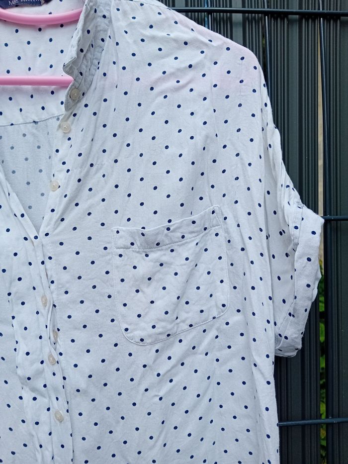 Chemisier blanc à pois noir avec manches courtes En coton Taille L 40 Marque M&S
