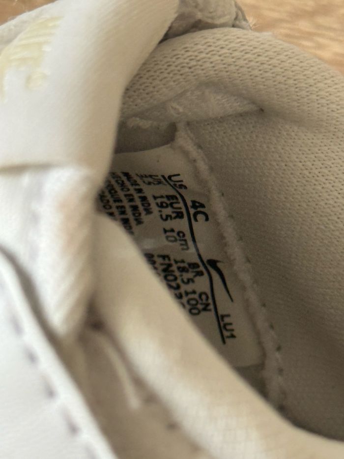 Je vends une paire de Nike Air Force 1 blanches avec détails beige/doré, en excellent état. ✨ Portées seulement 2-3 fois, elles sont comme neuves : • aucune usure • semelles excellent état • cuir impeccable • intérieur propre 📏 Taille : 19,5 (10 cm) (visible sur l’étiquette) ✅ Prix magasin 60€ 📦 Envoi rapide et soigné. 📩 N’hésite pas à m’envoyer un message si tu veux plus de photos ou d’infos.