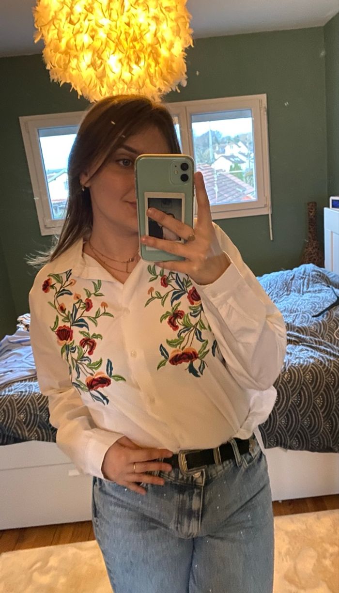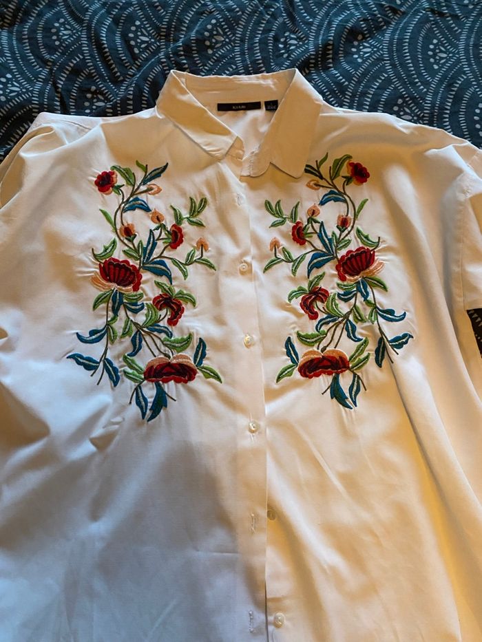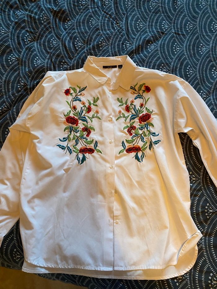 Chemise blanche avec fleurs colorées brodées sur le devant Très bon état