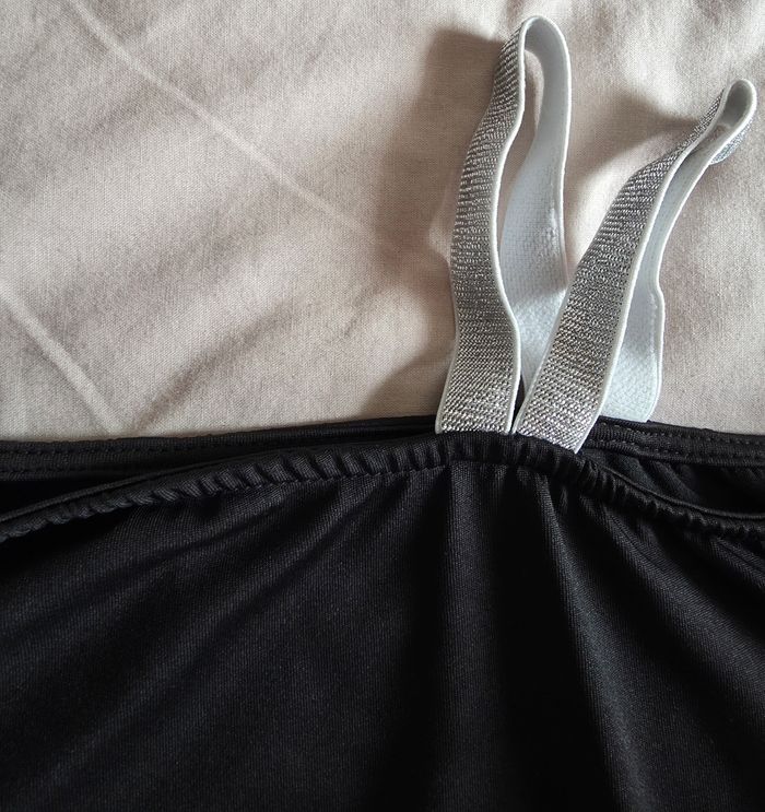 ​Haut Noir Manches Voile Brodées Fleurs Polyester Élasthanne Très bon état XL - photo numéro 6