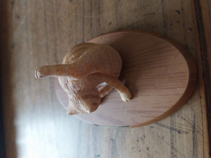 Statuette / figurine chat Quelle souplesse sur socle bois – déco originale - photo numéro 1