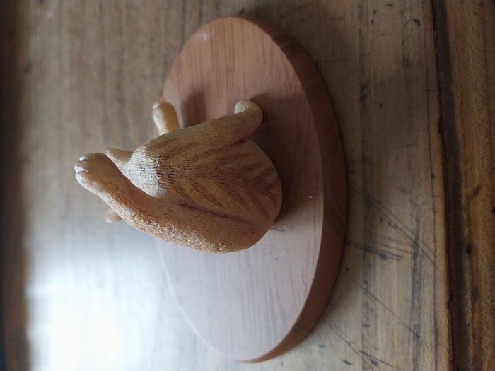 Statuette / figurine chat Quelle souplesse sur socle bois – déco originale - photo numéro 6