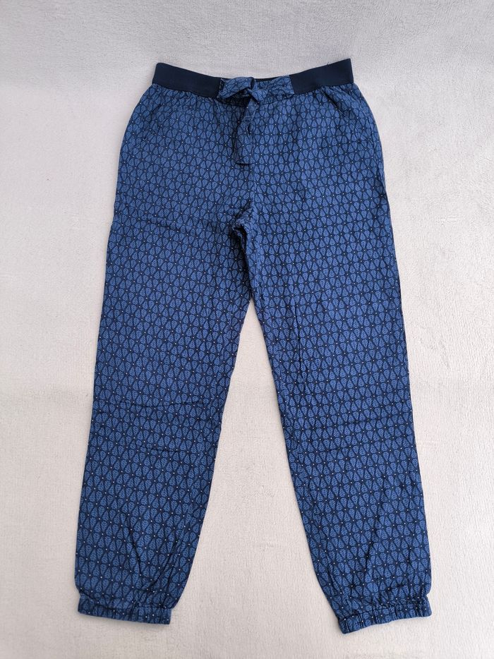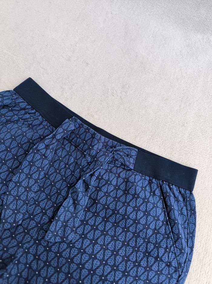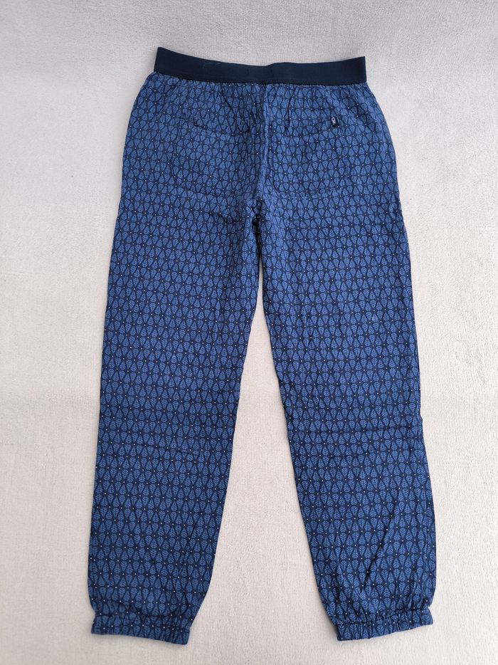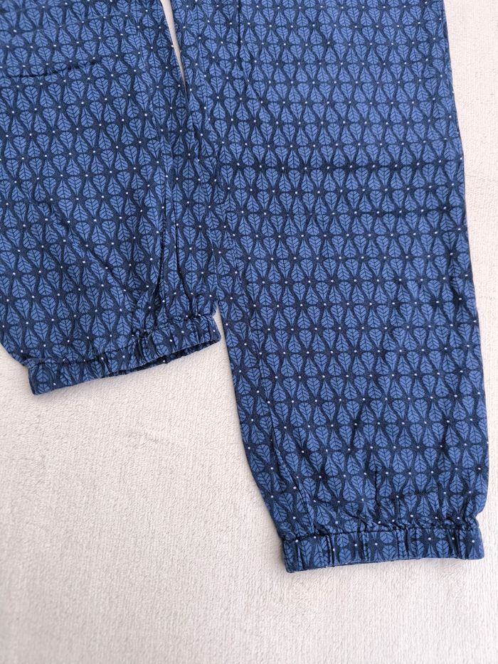 Pantalon Marque Okaïdi Taille 8 ans, 128 cm • Coloris marine, bleu, blanc • Imprimés pois, feuilles • Taille élastique, nœud décoratif • Bas des jambes élastique • 4 poches • Tissu fin, fluide En très bon état #evelyne_filles_8ans #evelyne_filles
