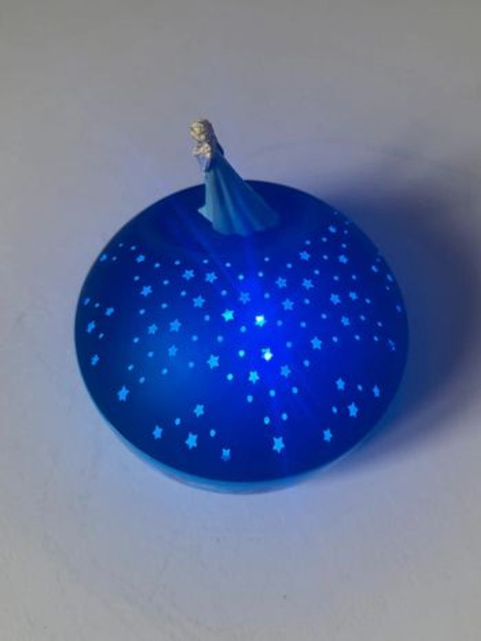 Grâce à ses puissants pouvoirs, la reine des neiges Elsa projettera en musique, des myriades d'étoiles dans la chambre de votre enfant. Ainsi il s'endormira bercé par une jolie nuit étoilée et une douce mélodie (Libérée, délivrée). La marque Trousselier a créé ce superbe projecteur d'étoiles qui plaira sans nuls doutes aux enfants comme à leurs parents puisque les tout-petits ne seront plus dans le noir et seront rassurés. Peut s'utiliser en mode musical seul, mode projection d'étoiles seules ou en mode projection et musical en même temps. Elsa tourne sur un axe tandis que les étoiles multicolores sont projetées au plafond. Une superbe idée de cadeau de naissance ou d'anniversaire. Infos pratiques: Dimension 12 cm. Musique du Film : Libérée, Délivrée Etoiles multicolores. Arrêt automatique au bout de 30 minutes afin de préserver les piles. Age : Dès la naissance.