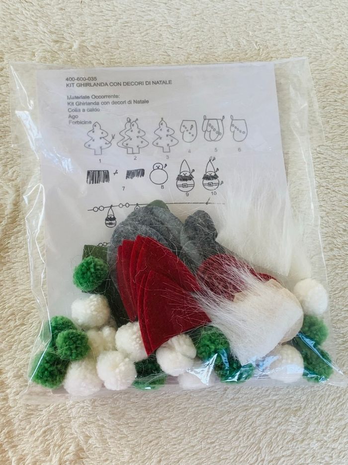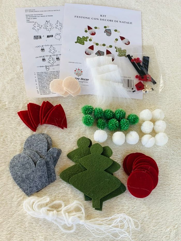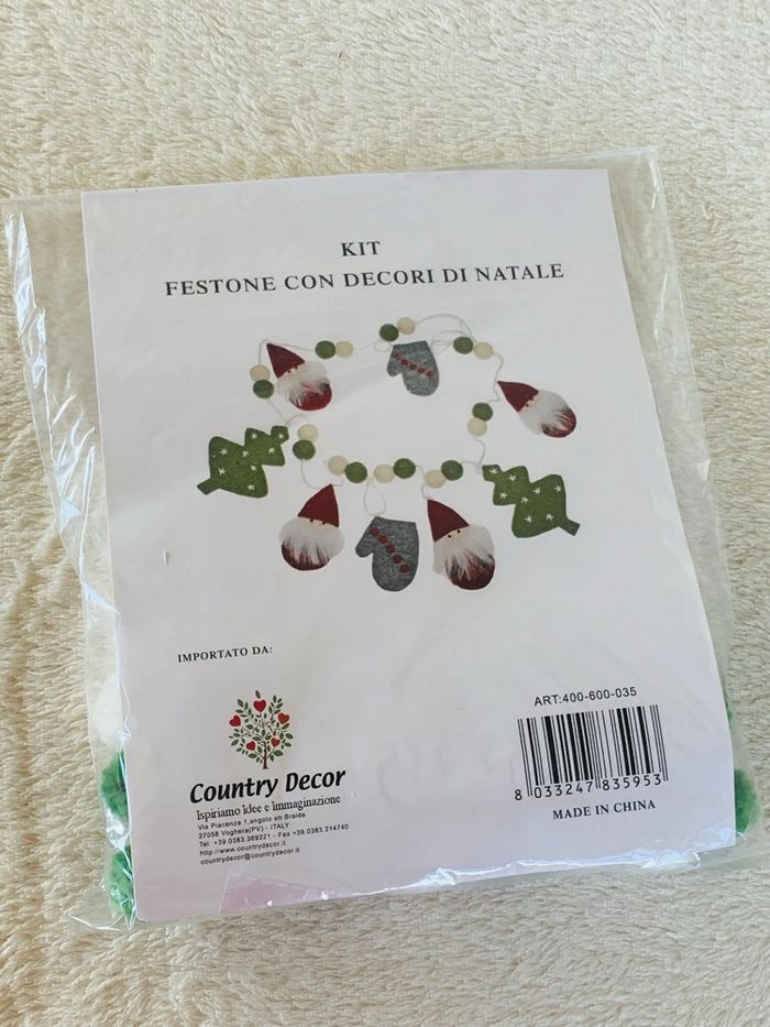 Kit guirlande à faire Noel en feutrine Country Decor  4 lutins, 2 sapins et 2 gants, 18 pompons et corde  Notice en italien  Neuf, sans utilisation  ⛔️ Prix FIXES, NON négociables 🚨  👏🏻 Réductions sur les lots 👍🏻 #noel #guirlande #scrapbooking #loisirscreatifs