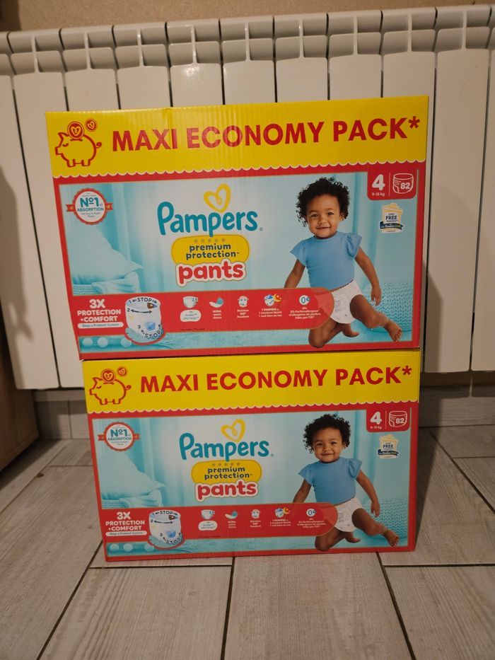 Bonjour Je mets en vente ce lot de cartons neufs de pampers prenium protection pants taille 4 164 couches au total Envoie rapide en semaine Beaucoup de retard avec relais colis, privilégiez mondial relay 😊 Ne prennez pas 4 cartons d un coup svp. Possible de faire des annonces de 3 sur demandes
