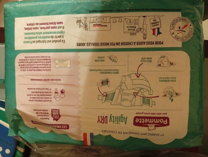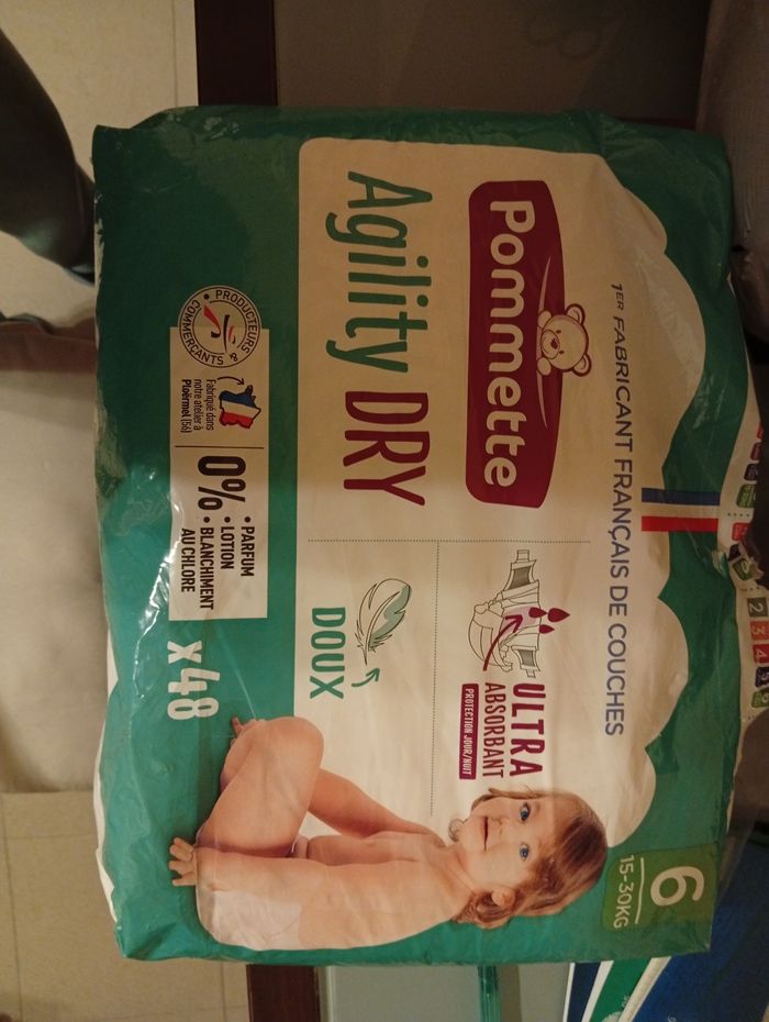 Couche ultra absorbant marque Pommette Agility Dry gros paquet par 48. Enfants de 15 a 30kg taille 6
