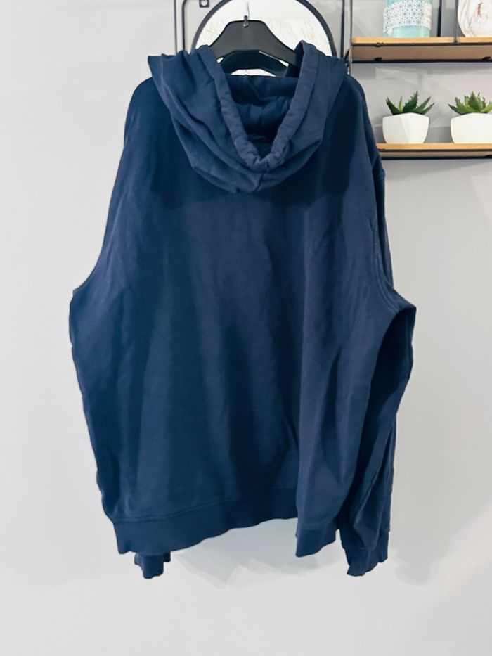 gilet à capuche bleu marine de la marque Kiabi. Un basique indispensable, confortable et facile à porter au quotidien. • Coupe : droite / légèrement oversize • Détails : Fermeture éclair fonctionnelle, deux poches à l'avant, capuche avec cordon de serrage. • État : Bon état général. Pas de trous ni de taches. Le tissu a un aspect patiné naturel qui lui donne du cachet