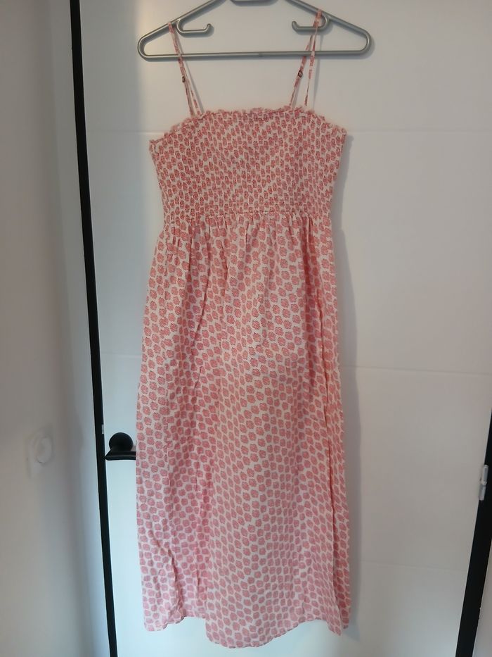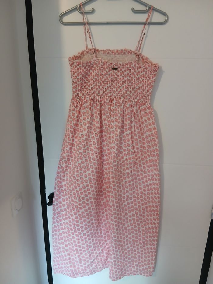 Robe longue femme BILLABONG. Neuf, jamais portée. Taille: L. Couleur : rose / blanc. Bretelles réglables. Emboitement poitrine smock. Doublée. Prix d'achat en boardshop : 70 euros. Vendu 40 euros.