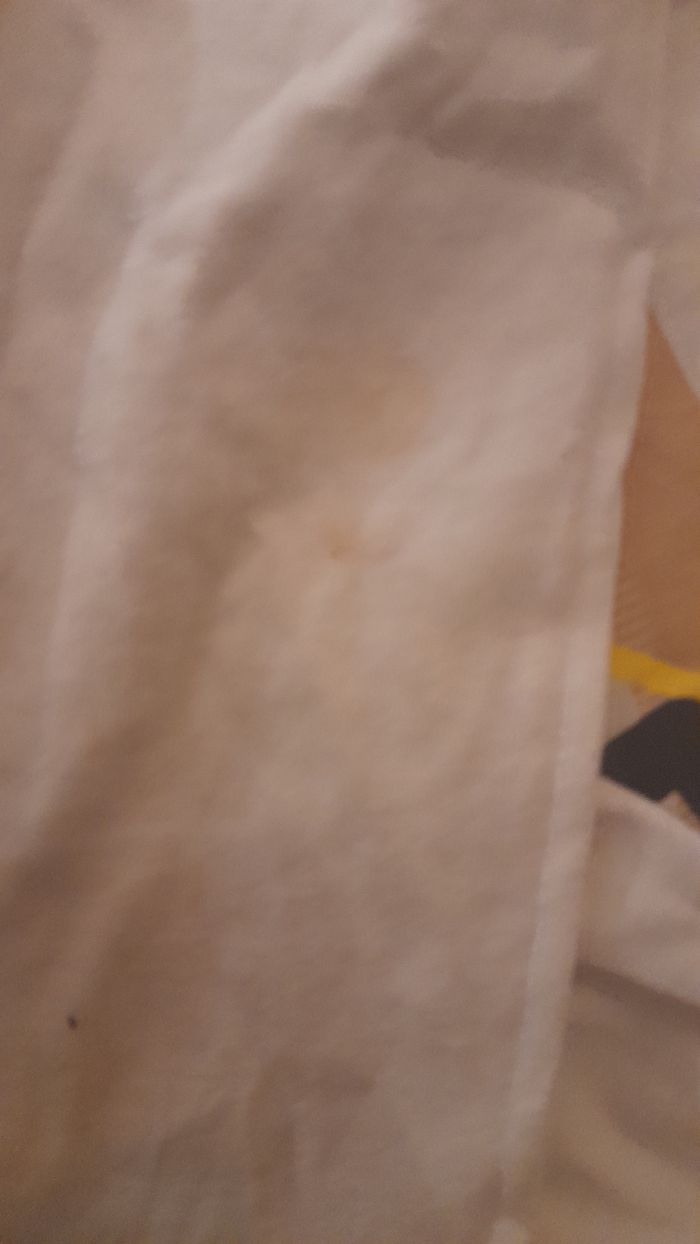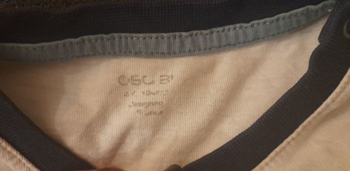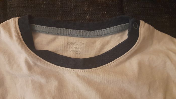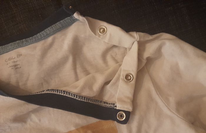 T-shirt manches longues Col rond 2 pression sur l'épaule Quelques tâches voir les deux dernières photos.