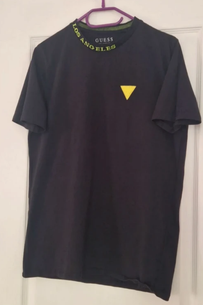 e vends ce T-shirt Guess Los Angeles, une pièce tendance et facile à porter au quotidien. Son logo triangle jaune iconique apporte une touche moderne et reconnaissable, parfaite pour un look casual ou streetwear. Le t-shirt a été porté une seule fois et se trouve en excellent état, comme neuf. 👕 Détails : Marque : Guess Taille : S (Regular fit) Couleur : noir Logo triangle Guess sur la poitrine Col avec inscription “Los Angeles” ✔️ Confortable ✔️ Style intemporel ✔️ Qualité Guess ✨ Envoi rapide et soigné