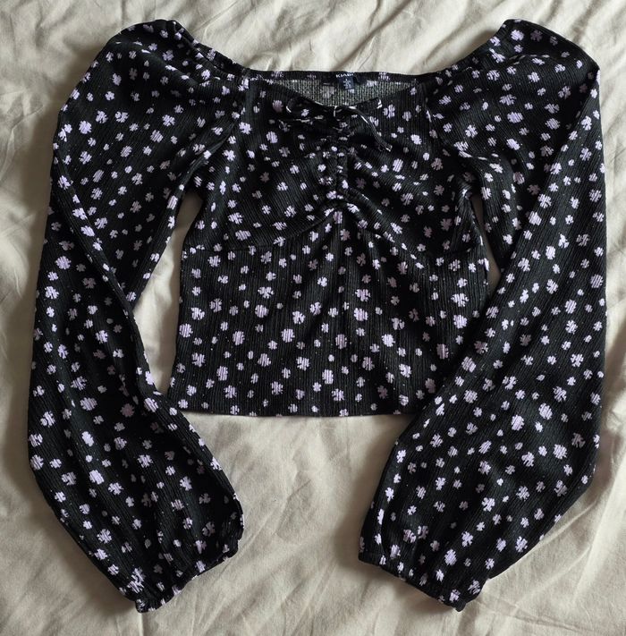 ​KIABI Top Noir à Pois Violet Manches Longues Taille S - photo numéro 5