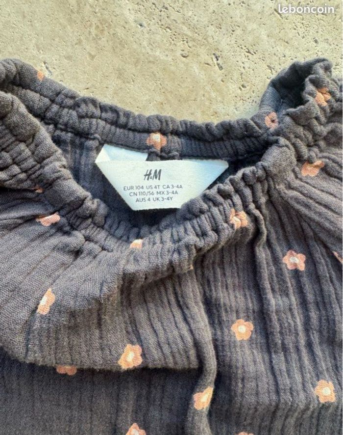 Robe fluide et souple, H&M, 4 ans, marron glacé avec fleurs rose