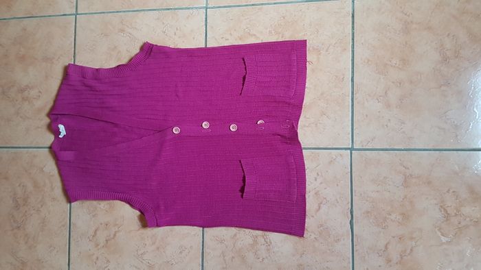 Gilet été femme Plus étiquette correspond au 40 Couleur bordeau Sans manche 2 poches Encolure en V Fermeture à boutons Marque Bellita