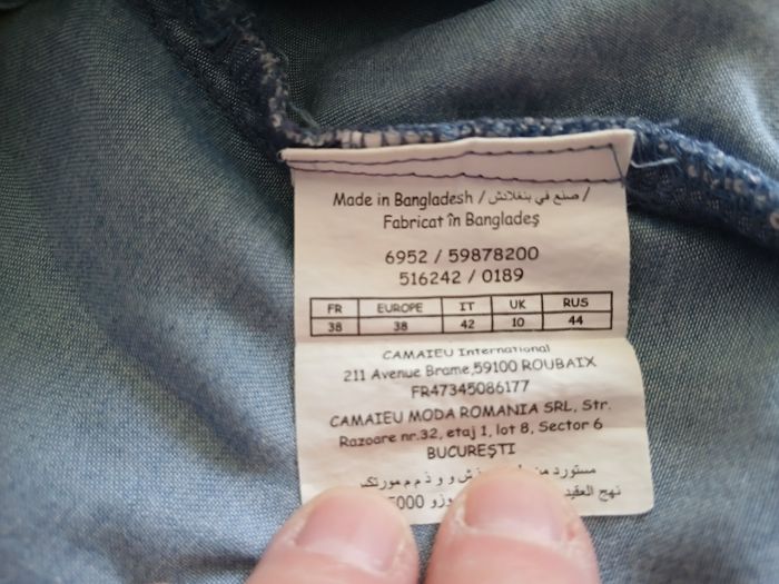 Robe estivale CAMAÏEU. Très bon état général. Taille : 38. Couleur : jean. Matière fluide et légère. Longueur: au dessus du genou. Ceinture amovible. Poche x 2 devant. Prix d'achat en magasin : 39.99 euros. Vendu 10 euros.