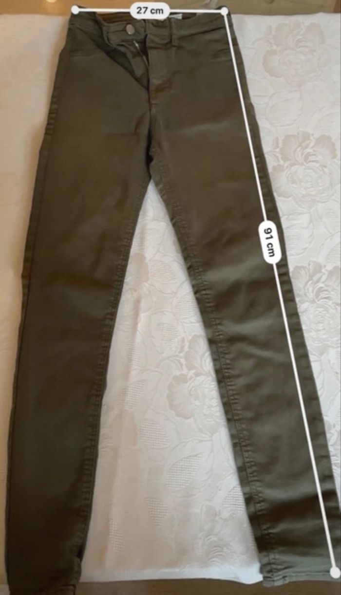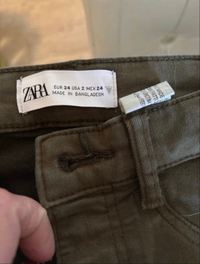 Pantalon femme Zara en excellent état taille 34 couleur kaki dimension dans les photos pour toute question n’hésitez pas à me contacter