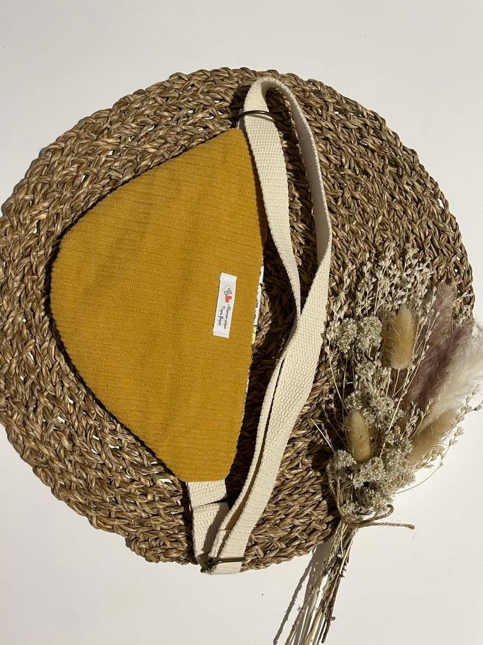 Sacoche banane enfant fait main en velours côtelé jaune, avec joli tissu Pokémon 🌸 📏 Dimensions : environ 21 x 14 cm 📐 Longueur de sangle : environ 90 cm (réglable) 🎒 Sangle écrue confortable 🔒 Fermeture zippée solide ✨ Pièce artisanale, légère et pratique pour les petits essentiels ✉️ Envoi rapide et soigné N’hésitez pas si vous avez des questions 🙂