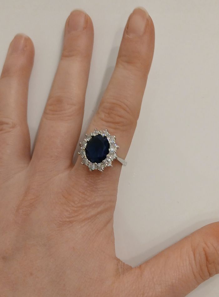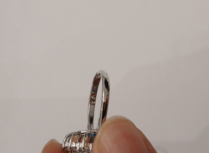 Bague argent 925 poinçonné pierre bleu halo zircon ajustable  - photo numéro 3