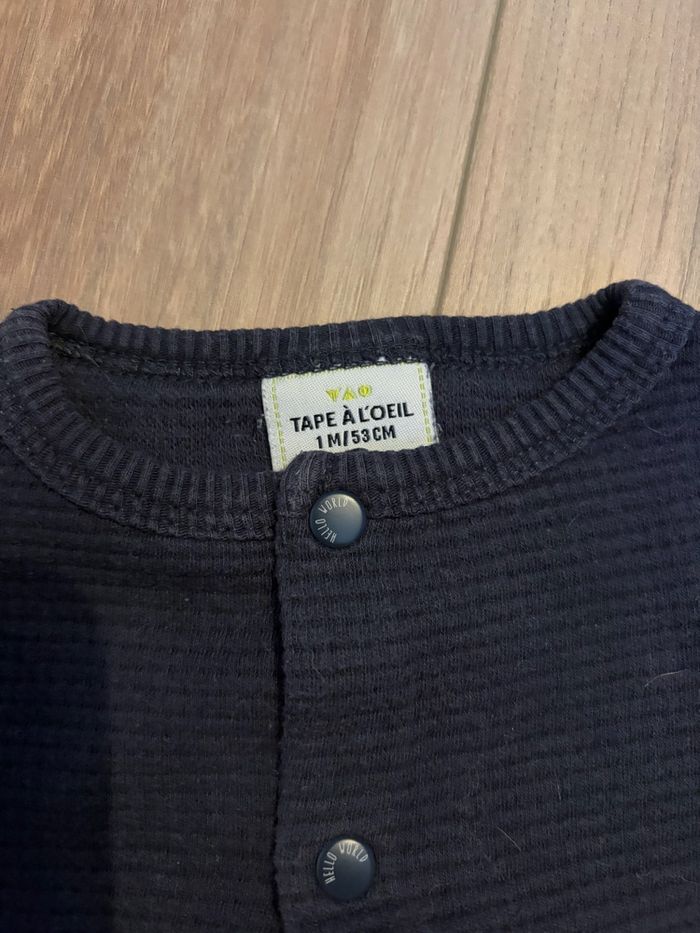 Gilet à pressions marine 🏷️ Tape à l’œil 📏 1 mois ⭐️ Très bon état. Pas de taches ni trous 🐻 Nombreux vêtements enfant dans mon dressing 💸 Réduction sur lot, -10% dès 2 articles