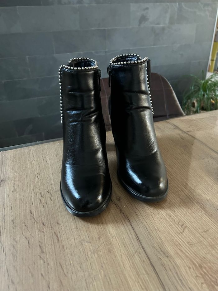 Bottines à talon noires Petites boules décoratives Pointure 37 Légères éraflures (voir photos)