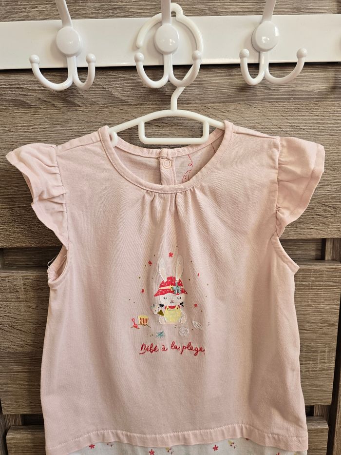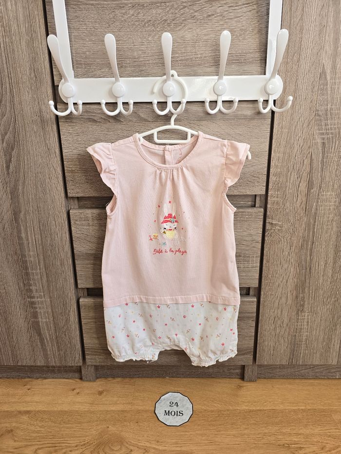 Lien direct vers les tailles équivalentes dans mon dressing : #fdhsarah24mois #fdhsarahSGMJ 📜 Combishort/ barboteuse manches courtes à volants. Couleur rose pâle sur la partie supérieure et blanc avec motifs fleurie et etoilé sur la partie basse. Illustration centrale représentant un petit lapin avec un chapeau et l'inscription "Bébé à la plage". Ref : CEGLACE Taille 📏 : 24 mois 86 cm État 🔍 : Bon état, un bouton de pression recousu Marque 🏷️ : Sergent Major Je suis disponible pour toutes questions ou photos supplémentaires. 📦 L’envoi se fait le plus rapidement possible Bon Shopping #fdhxxx24xxx