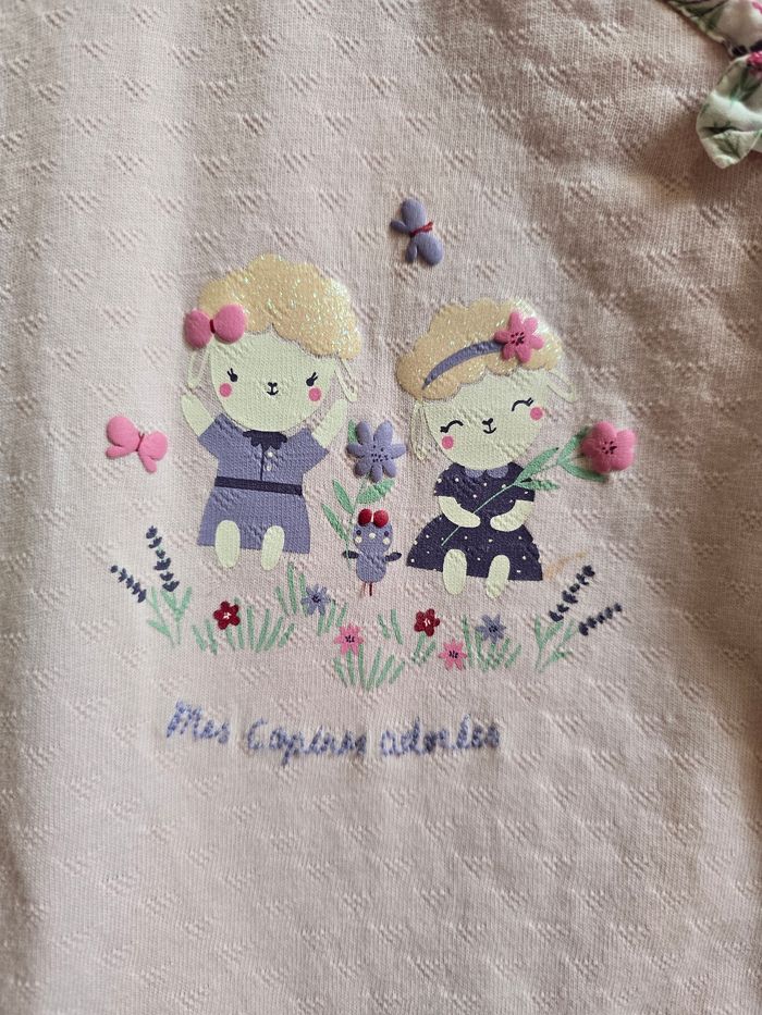 Lien direct vers les tailles équivalentes dans mon dressing : #fdhsarah24mois #fdhsarahSGMJ 📜 Combishort/ barboteuse à manches courtes. Rose pâle avec un liseré fleuri délicat le long de l'encolure et de l'ouverture latérale. Illustration centrale représentant deux petits moutons dans un jardin fleuri avec l'inscription "Mes copines adorées". Ref : CEGALA Taille 📏 : 24 mois 86 cm État 🔍 : Très bon état Marque 🏷️ : Sergent Major Je suis disponible pour toutes questions ou photos supplémentaires. 📦 L’envoi se fait le plus rapidement possible Bon Shopping #fdhxxx24xxx