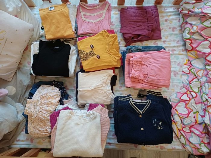 Je vends un lot de vêtements fille 6 ans, plusieurs marques comme Vertbaudet, Okaidi, Tape a l'Oeil - 6 t-shirts courtes manches - 4 blouses courtes manches - 4 blouses longues manches - 8 t-shirts longues manches - 4 gilets fin - 1 pantalon de mi-saison - 5 jeans - 9 pulls - 1 robe en jean courtes manches - 2 jupes (44 articles) Le tout en bon état voire très bon état
