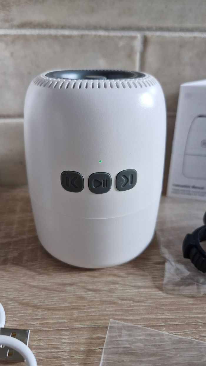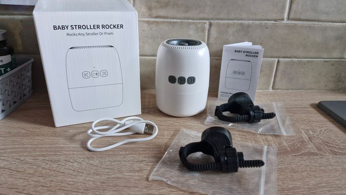 Comme neuf. Dans sa boîte avec notice. Sons apaisants (eau, oiseaux, battements du cœur,...) et mode berceuse / rocker pour avoir les mains libres tout en berçant bébé. En effet, grâce aux 2 clips noirs, le rocker se fixe sur la poussette ou le cosy et berce bébé tout seul. La vitesse est réglable. Tout comme le volume des bruits blancs. Se charge par USB. Moteur très discret.
