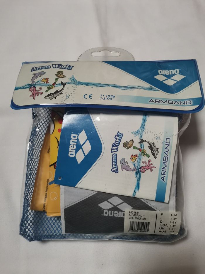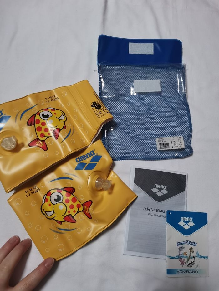 Brassard arena world Motif poisson 1 à 3 ans ou 11 - 18 kg En très bon état, sacoche légèrement abîmée, voir photos